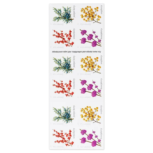 TULSA ¡ª With the release of the Winter Berries Forever stamps, the U.S. Postal Service celebrates four of winter¡¯s small yet vibrant offerings: the winterberry (Ilex verticillata), the juniper berry (Juniperus communis), the beautyberry (Callicarpa Americana), and the soapberry (Sapindus saponaria).